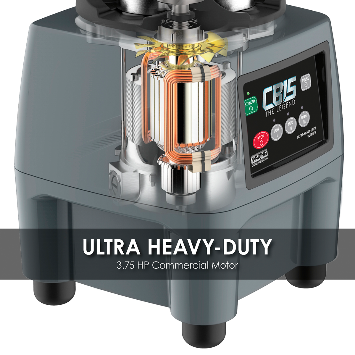 The Waring® CB15 has your back when it comes to ultra heavy-duty blenders, making 100+ drinks per day. Chop, mix and shred large loads that need long blending times with a powerful 3.75 HP motor and electronic keypad controls. The durable, 1-gallon stainless steel container means business with two handles for carrying and pouring, and lid clamps for security.