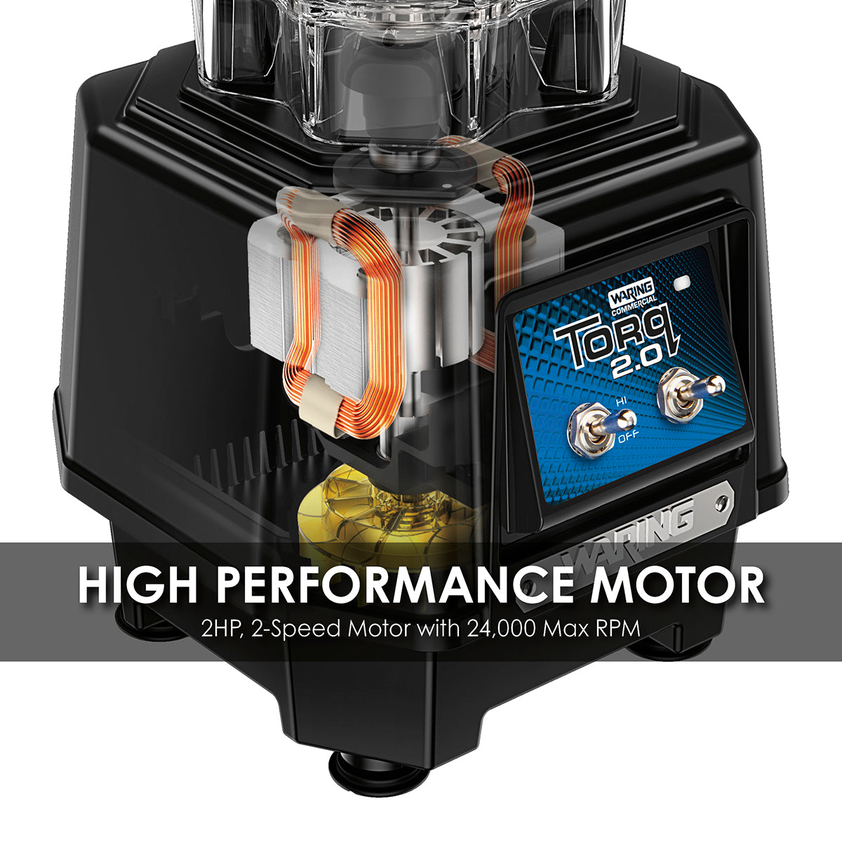 Quickly prepare margaritas, daiquiris, sauces, soups, and more with the Waring® Torq 2.0 Series TBB145S4. This heavy-duty, 2-speed blender works great for medium or heavy food and beverage preparation. It easily churns out three 16 oz. margaritas in 8 seconds or less. A classic toggle switch design makes it perfect for any bar, restaurant, or smoothie shop.