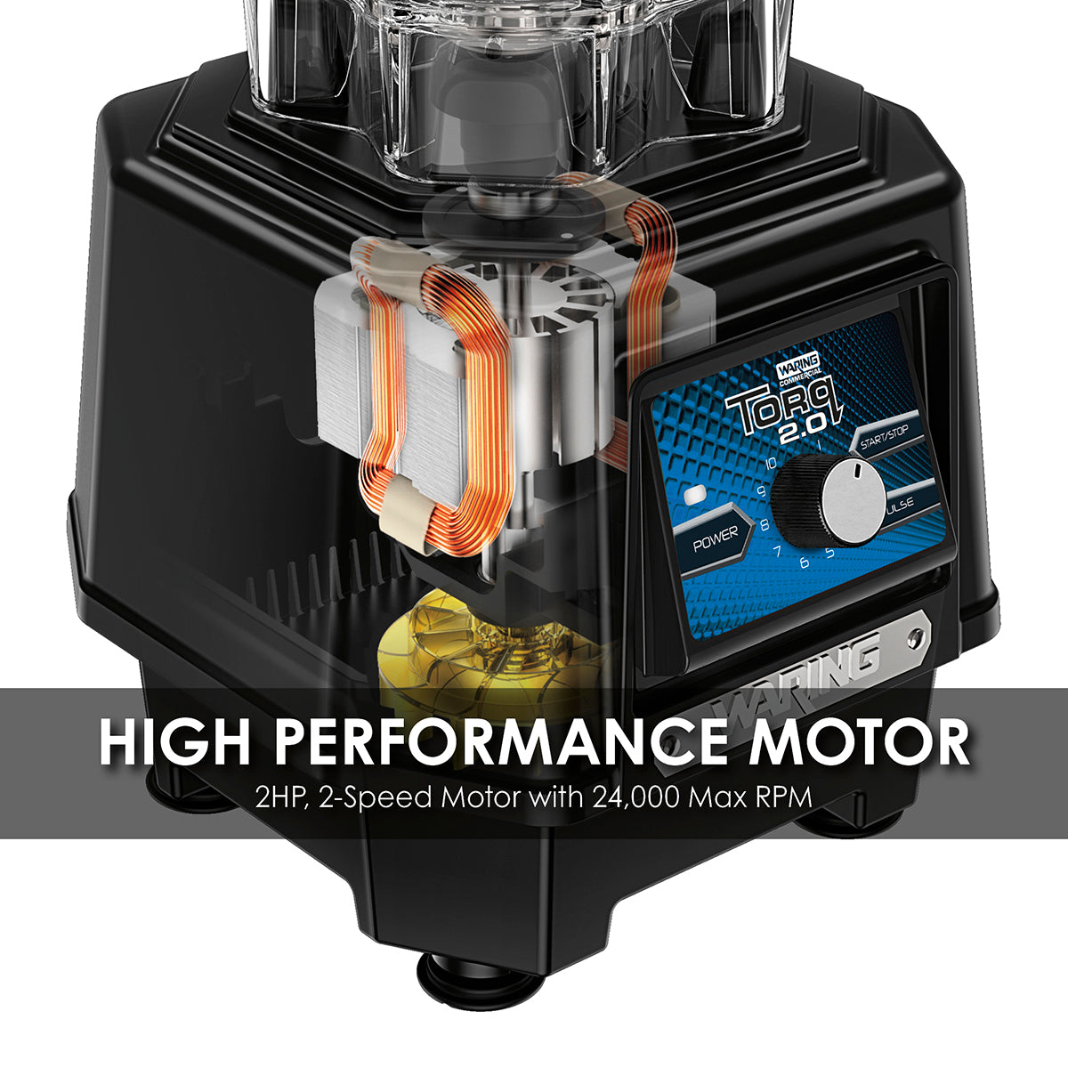 Quickly prepare margaritas, daiquiris, sauces, soups, and more with the Waring® Torq 2.0 Series TBB175. This heavy-duty, 2-speed blender works great for medium or heavy food and beverage preparation. It easily churns out three 16 oz. margaritas in 8 seconds or less. Electronic Touchpad Controls and Variable Speed Control Dial make it perfect for any bar, restaurant, or smoothie shop.