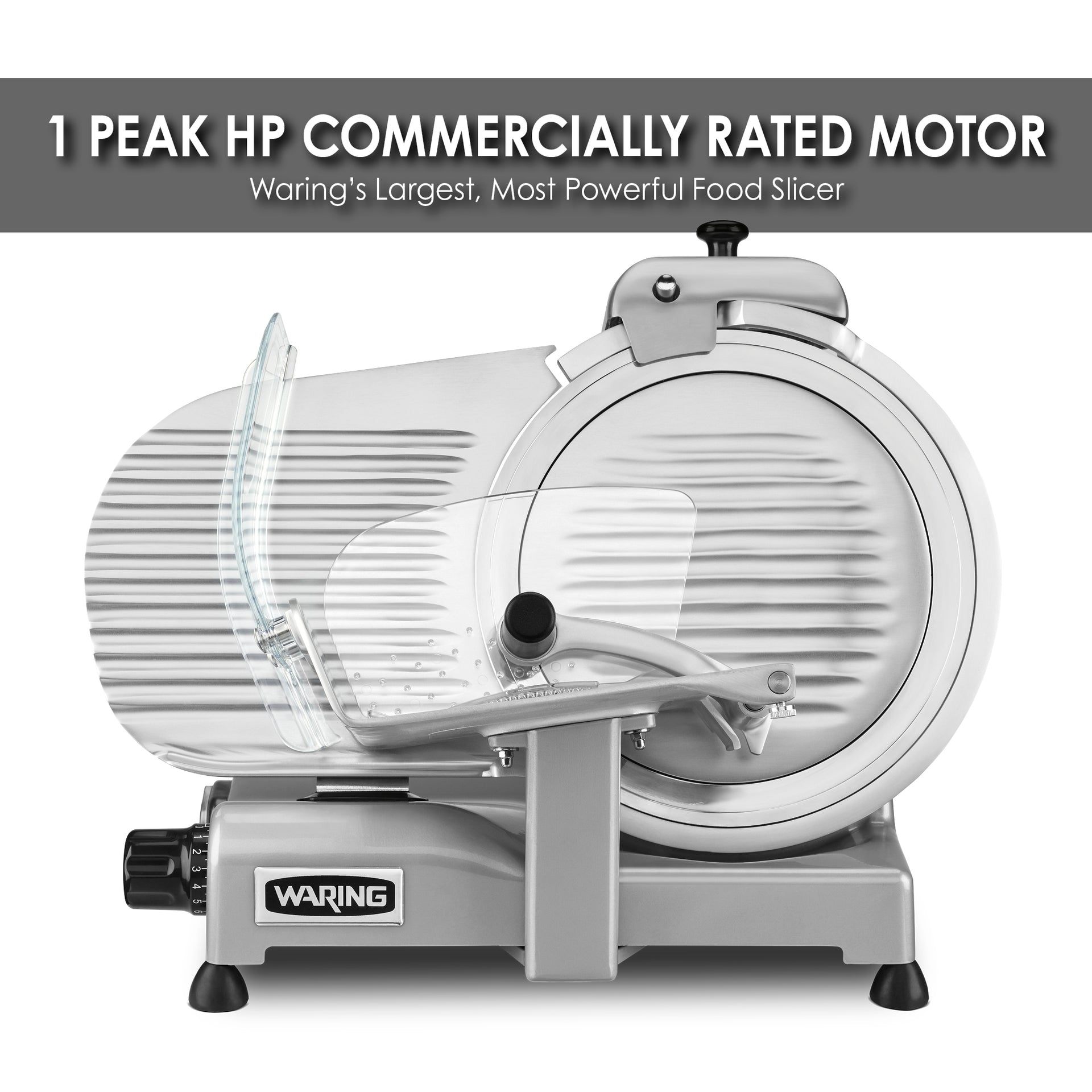 - Waring’s largest, most powerful food slicer, with a 1 HP* commercial-rated motor