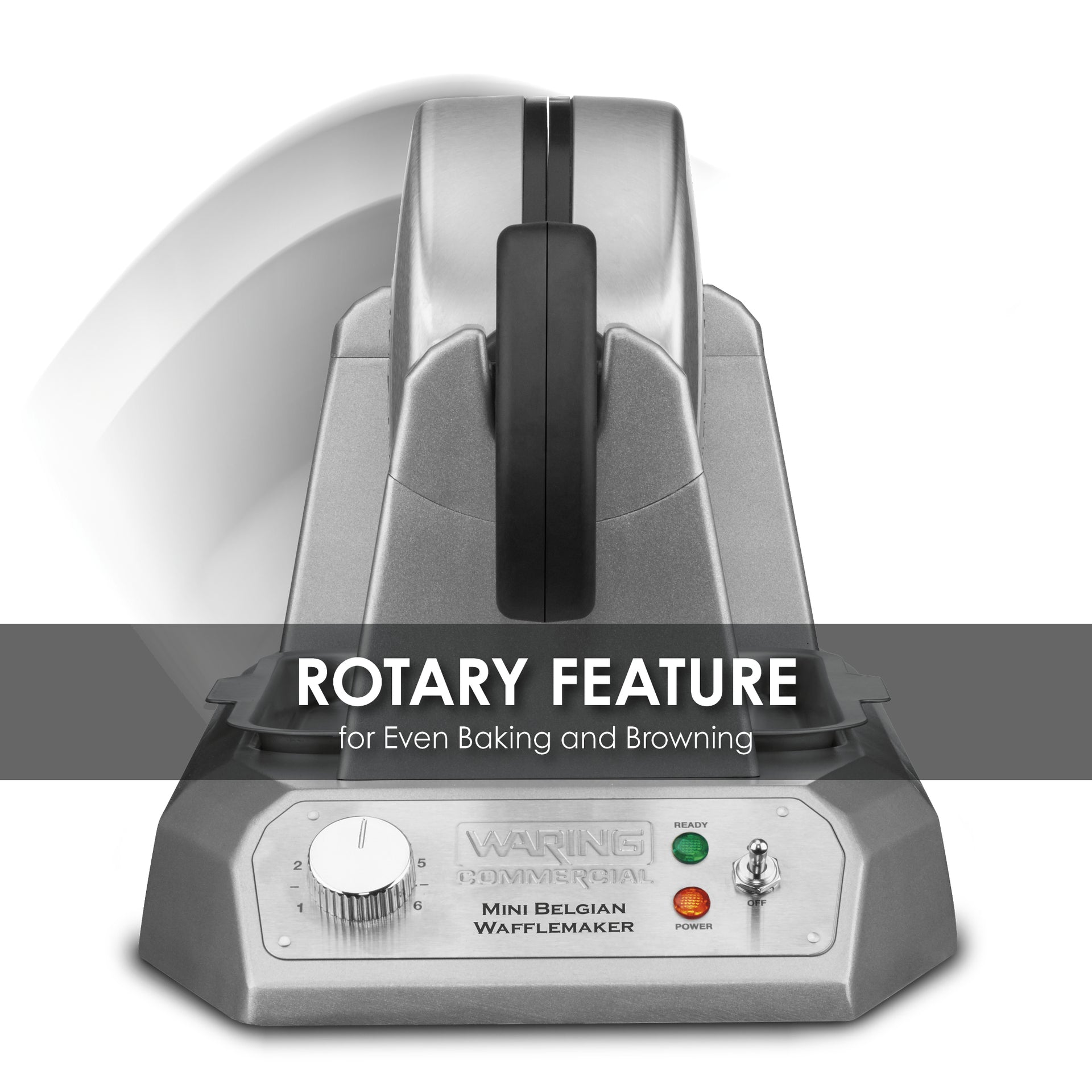 Elevate any menu with deep-pocketed mini Belgian waffles topped with berries, syrup, ice cream, or even chicken. Designed to produce up to 100, 1"-thick mini Belgian waffles per hour, this innovative unit makes it easy to create endless variations of these savory and sweet treats. Each mini Belgian waffle is baked to perfection with precision temperature control and a rotary feature that ensures even baking and browning. Easy-to-clean, triple-coated nonstick plates release the waffles fully intact and flawlessly formed. An audible beep alerts users when to cook and when to serve.