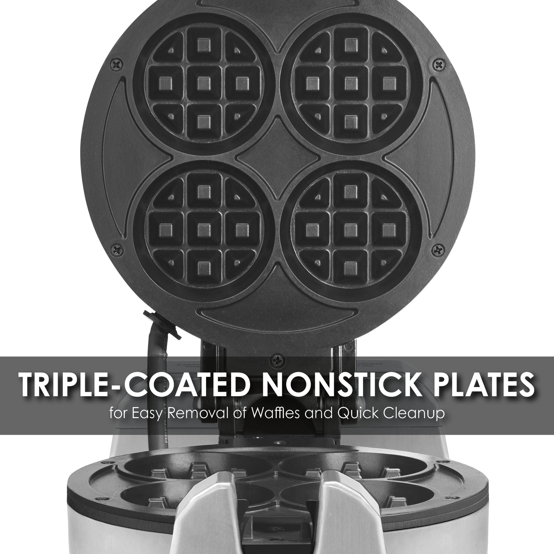 - Triple-coated nonstick plates for easy removal of waffles and quick cleanup
