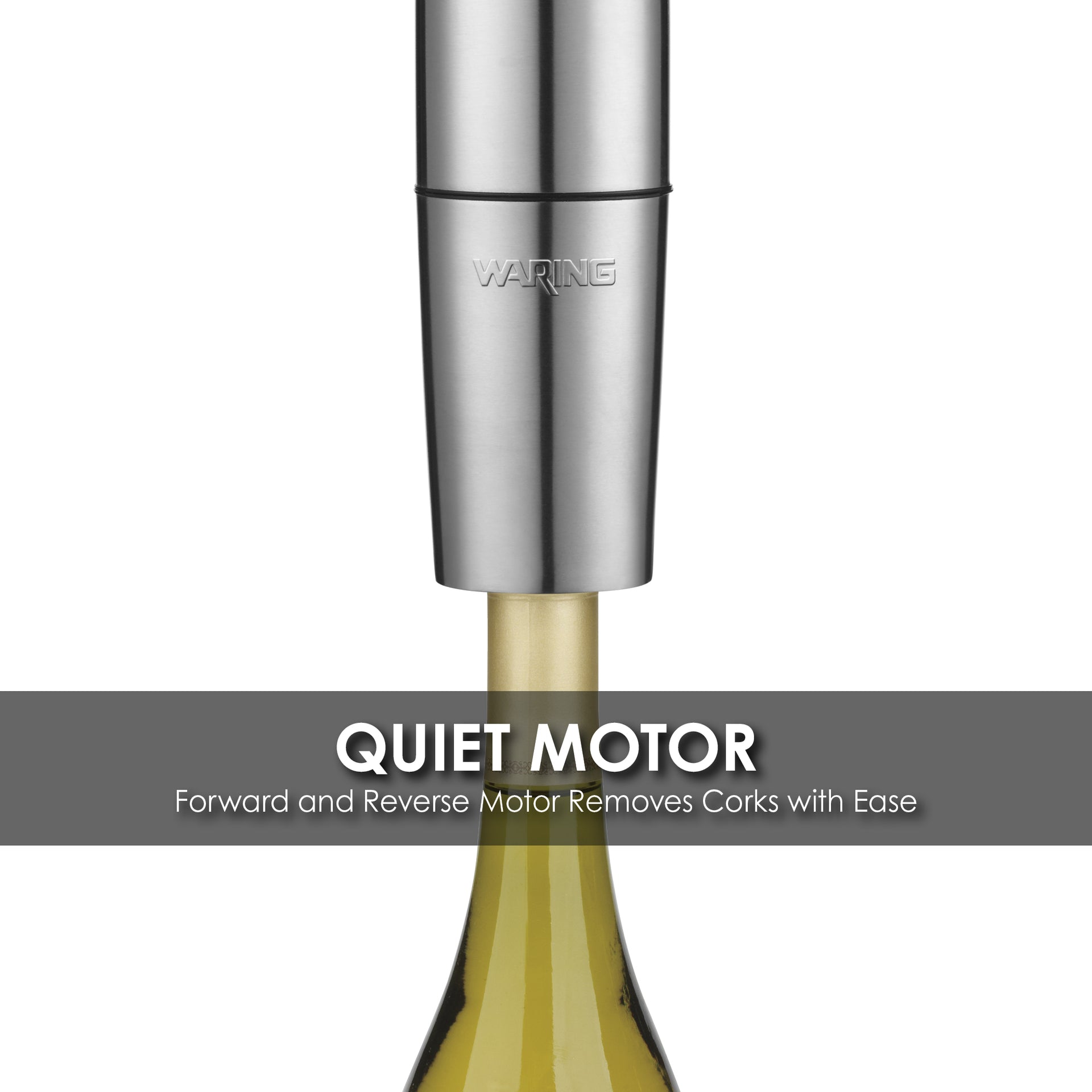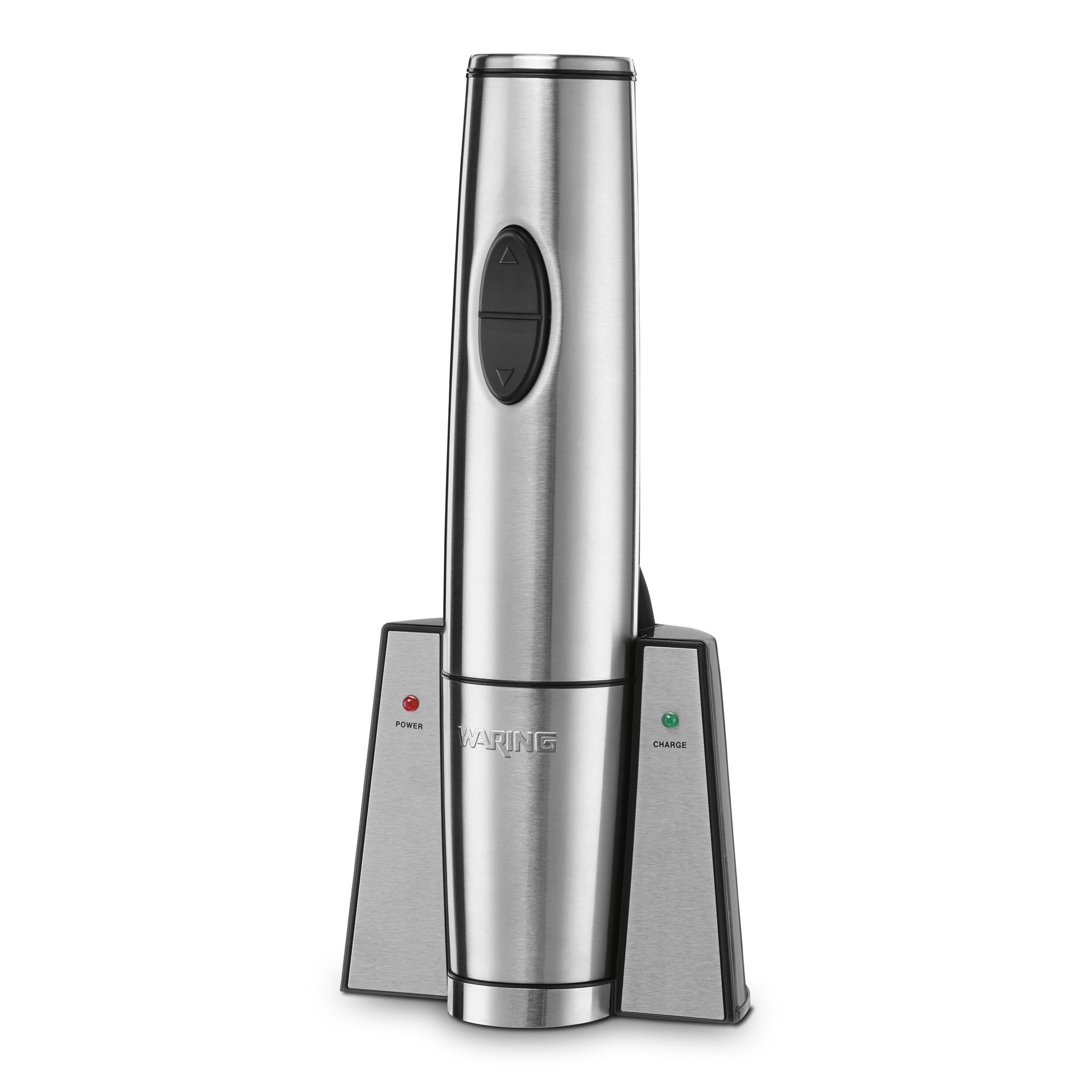 Keep the wine flowing with the Waring® WW0120 Portable Electric Wine Bottle Opener. Removes 120 corks with one full charge. It's perfect for catering events, banquets, restaurant wait staff and behind the bar. Fully portable, electric and rechargeable. Its high-performance commercial motor removes natural and synthetic corks with ease. Compact stainless steel housing is portable and easy to handle.