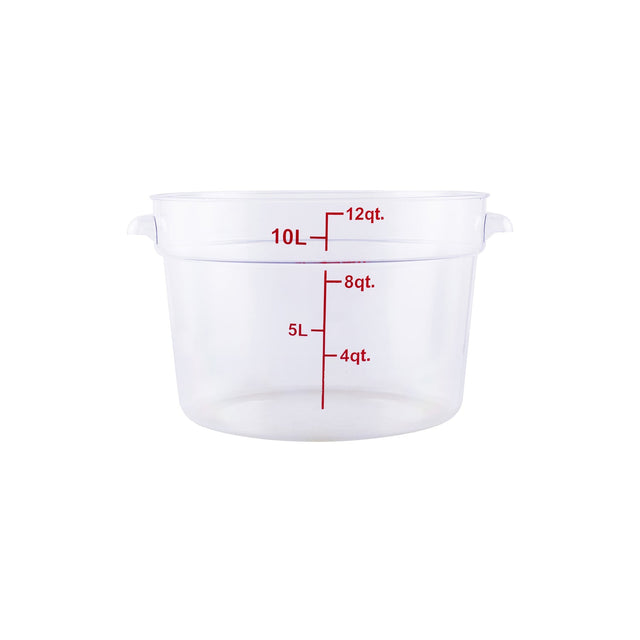 Food Storage Container, 12 qt., round, stackable, dishwasher and freezer safe, temperature resistant from -40°F/-40°C to 210°F/99°C, polycarbonate, clear, , NSF (QTY break = 12 each)