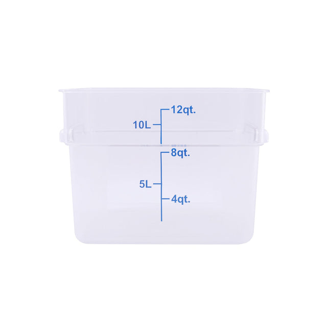 Food Storage Container, 12 qt., square, stackable, dishwasher and freezer safe, temperature resistant from -40°F/-40°C to 210°F/99°C, polycarbonate, clear, , NSF (QTY break = 12 each)