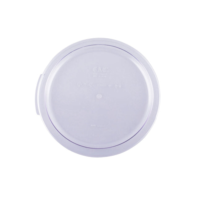 Food Storage Container Cover, for 12 qt., 18 qt., & 22 qt. containers, round, stackable, dishwasher and freezer safe, temperature resistant from -40°F/-40°C to 210°F/99°C, polycarbonate, clear, , NSF (QTY break = 6 each)