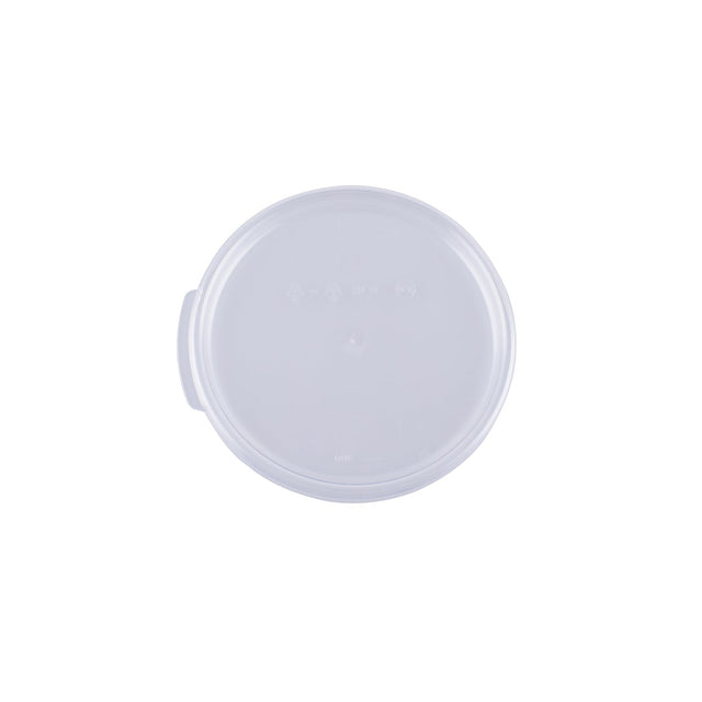 Food Storage Container Cover, for 2 qt. & 4 qt. container, round, stackable, dishwasher and freezer safe, temperature resistant from -40°F/-40°C to 210°F/99°C, polycarbonate, clear, , NSF (QTY break = 12 each)