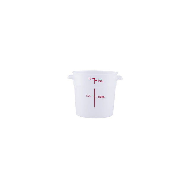 Food Storage Container, 1 qt., round, stackable, dishwasher and freezer safe, temperature resistant from -40°F/-40°C to 160°F/71°C, polypropylene, translucent, BPA free, NSF (QTY break = 12 each)