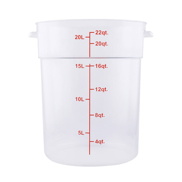 Food Storage Container, 22 qt., round, stackable, dishwasher and freezer safe, temperature resistant from -40°F/-40°C to 160°F/71°C, polypropylene, translucent, BPA free, NSF (QTY break = 6 each)