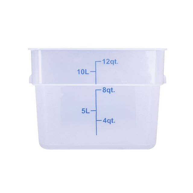 Food Storage Container, 12 qt., square, stackable, dishwasher and freezer safe, temperature resistant from -40°F/-40°C to 160°F/71°C, polypropylene, translucent, BPA free, NSF (QTY break = 12 each)