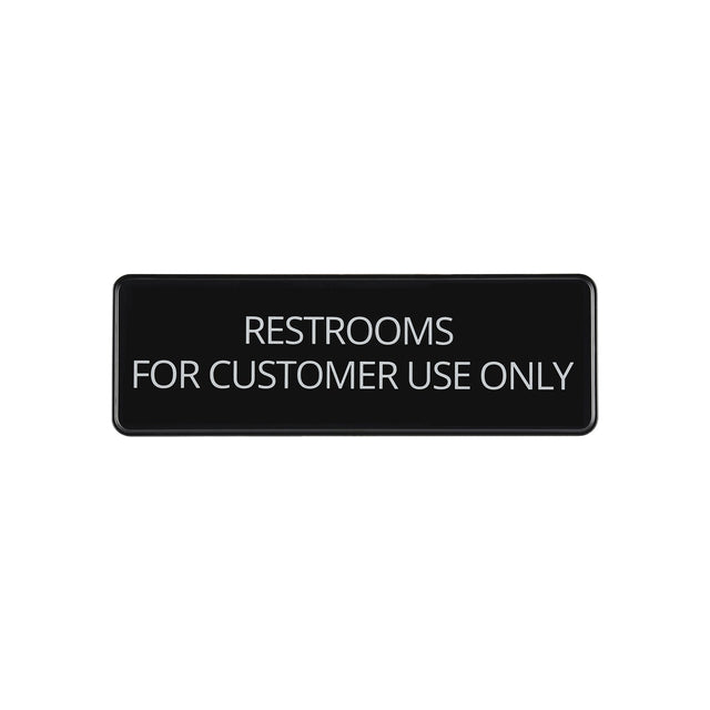 Compliance Sign, English, 9" x 3"H, "Restrooms For Customer Use Only", includes: pressure sensitive self adhesive tape, heavy-duty, plastic, black (QTY break = 12 each)