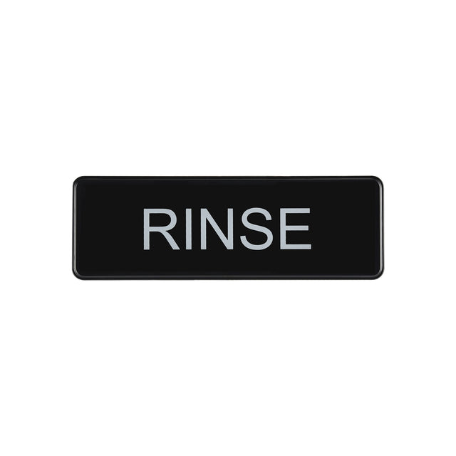 Compliance Sign, English, 9" x 3"H, "Rinse", includes: pressure sensitive self adhesive tape, heavy-duty, plastic, black (QTY break = 12 each)
