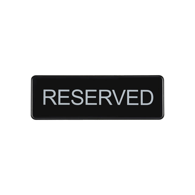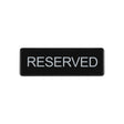 Compliance Sign, English, 9" x 3"H, "Reserved", includes: pressure sensitive self adhesive tape, heavy-duty, plastic, black (QTY break = 12 each)