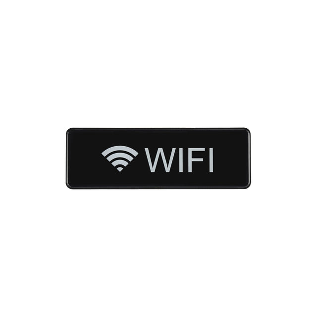 Compliance Sign, English, 9" x 3"H, "Wifi", includes: pressure sensitive self adhesive tape, heavy-duty, plastic, black (QTY break = 12 each)