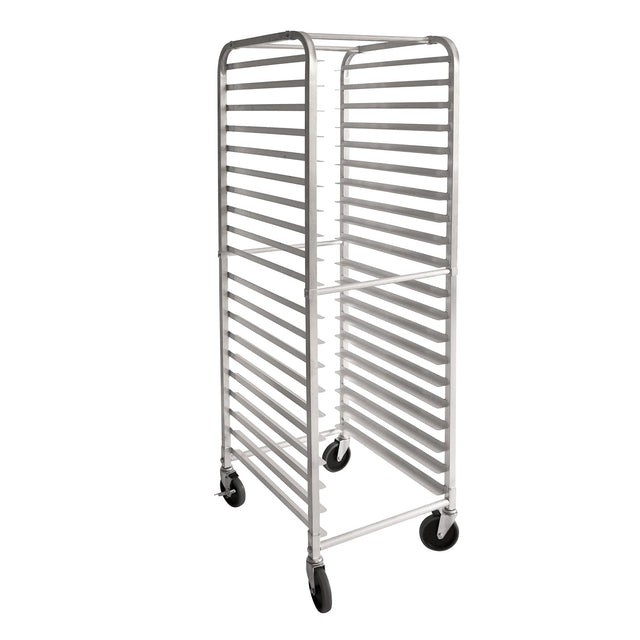 Sheet Pan Rack Set, 26"L x 20"W x 69"H, 20-tier, heavy duty, 3" spacing, holds (20) full size (26" x 18") sheet pans, (4) 5" swivel, (2) with brake, aluminum, KD, NSF (QTY break = 1 set)