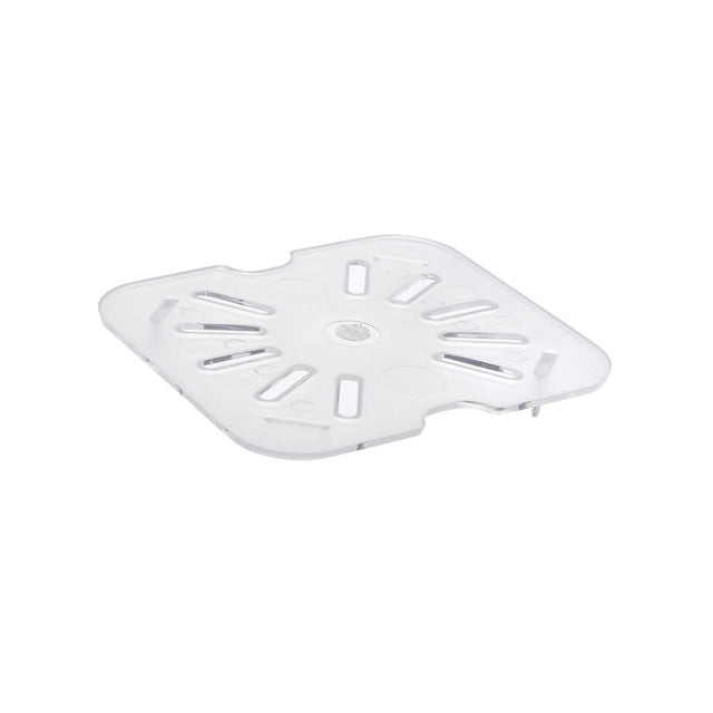 Food Pan Drain Shelf, 1/6-size, shatter and scratch resistance, dishwasher and freezer safe, temperature resistance between -40 to 210°F polycarbonate, clear, NSF (QTY break = 20 each)