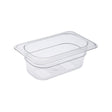 Food Pan, 1/9-size, 2-1/2" deep, rounded corners, with smooth non-stick interior, shatter and scratch resistance, dishwasher and freezer safe, temperature resistance between -40 to 210°F polycarbonate, clear, NSF (QTY break = 12 each)