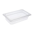 Food Pan, 1/4-size, 2-1/2" deep, rounded corners, with smooth non-stick interior, shatter and scratch resistance, dishwasher and freezer safe, temperature resistance between -40 to 210°F polycarbonate, clear, NSF (QTY break = 12 each)
