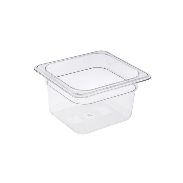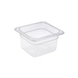 Food Pan, 1/6-size, 4" deep, rounded corners, with smooth non-stick interior, shatter and scratch resistance, dishwasher and freezer safe, temperature resistance between -40 to 210°F polycarbonate, clear, NSF (QTY break = 12 each)