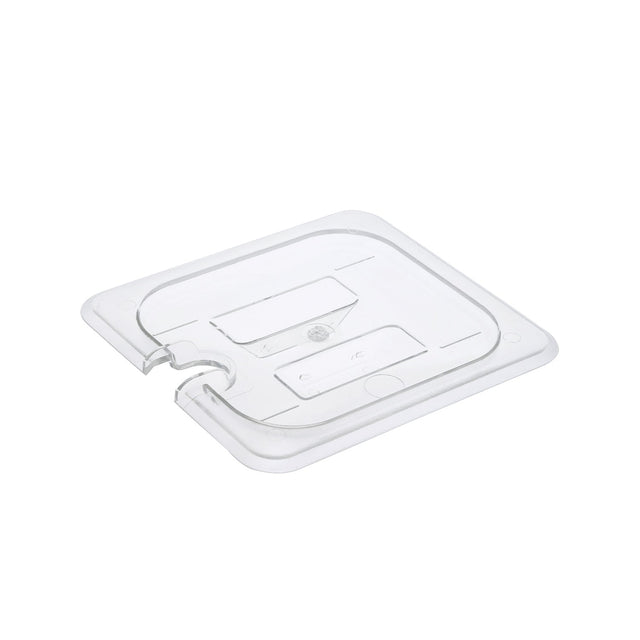 Food Pan Cover, 1/6-size, notched, shatter and scratch resistance, dishwasher and freezer safe, temperature resistance between -40 to 210°F polycarbonate, clear, NSF (QTY break = 12 each)