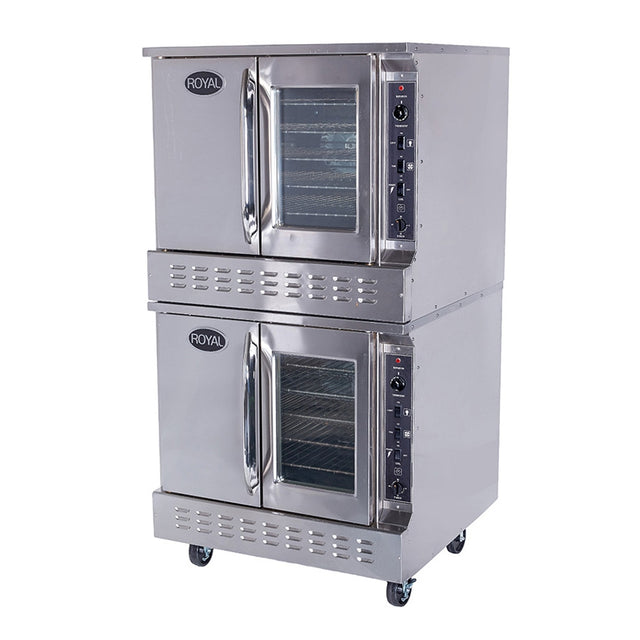 Convection Oven, gas, double-deck, bakery depth, thermostatic controls, temp range 150°F - 500°F, electronic ignition, 2-speed fan, porcelain interior, dual stainless steel doors with glass viewing window on right, stainless steel front, sides & top, legs, 160,000 BTU, cCSAus, CSA-Sanitation, Made in USA
