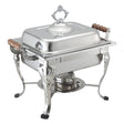 Welsh Chafing Dish, 4 qt., square, decorative lid handle, wood colored side handles, beveled legs with non-skid caps, includes: (1) cover, (1) water pan, (1) food pan & (2) fuel holders, stainless steel (Qty Break = 1 set)