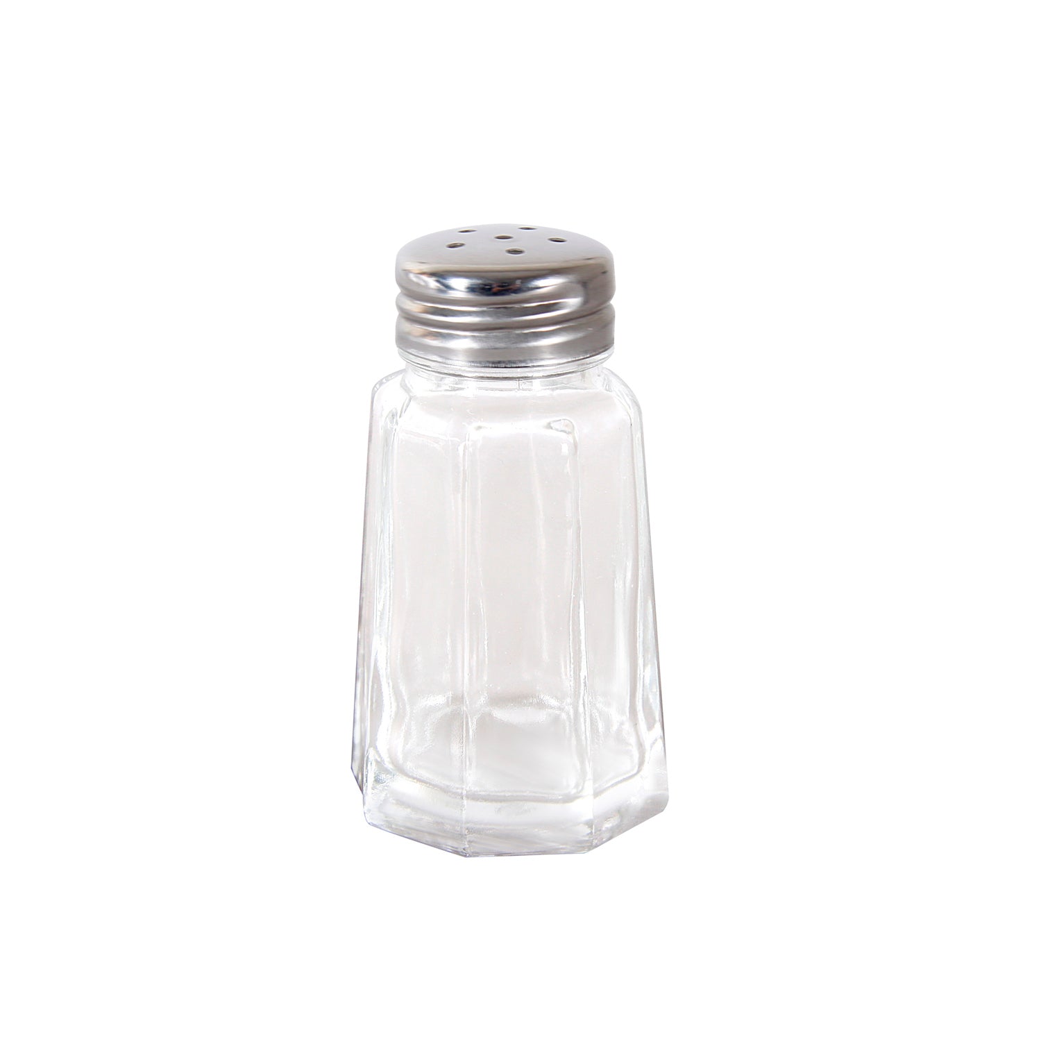 Shaker, 1 oz., paneled, lead-free glass with stainless steel mushroom top (Qty Break = 10 dozen)
