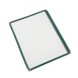 Menu Cover, 1-pocket, 8-1/2" x 11", Letter Size insert, clear double-sided view, with brass corners, green trim (QTY break = 25 each)