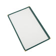 Menu Cover, 1-pocket, 8-1/2" x 14", Legal Size insert, clear double-sided view, with brass corners, green trim (QTY break = 25 each)