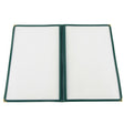 Menu Cover, 2-pocket, 8-1/2" x 14", Legal Size insert, clear double-sided view, with brass corners, green trim (QTY break = 25 each)
