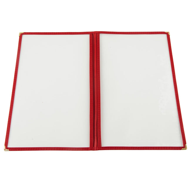 Menu Cover, 2-pocket, 8-1/2" x 14", Legal Size insert, clear double-sided view, with brass corners, red trim (QTY break = 25 each)