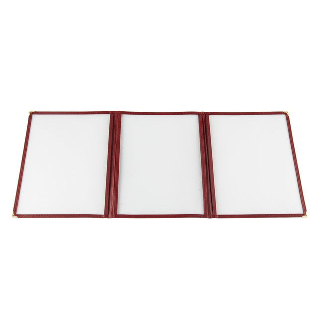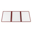 Menu Cover, 3-pocket, 8-1/2" x 11", Letter Size insert, clear double-sided view, with brass corners, burgundy trim (QTY break = 25 each)