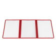 Menu Cover, 3-pocket, 8-1/2" x 11", Letter Size insert, clear double-sided view, with brass corners, red trim (QTY break = 25 each)