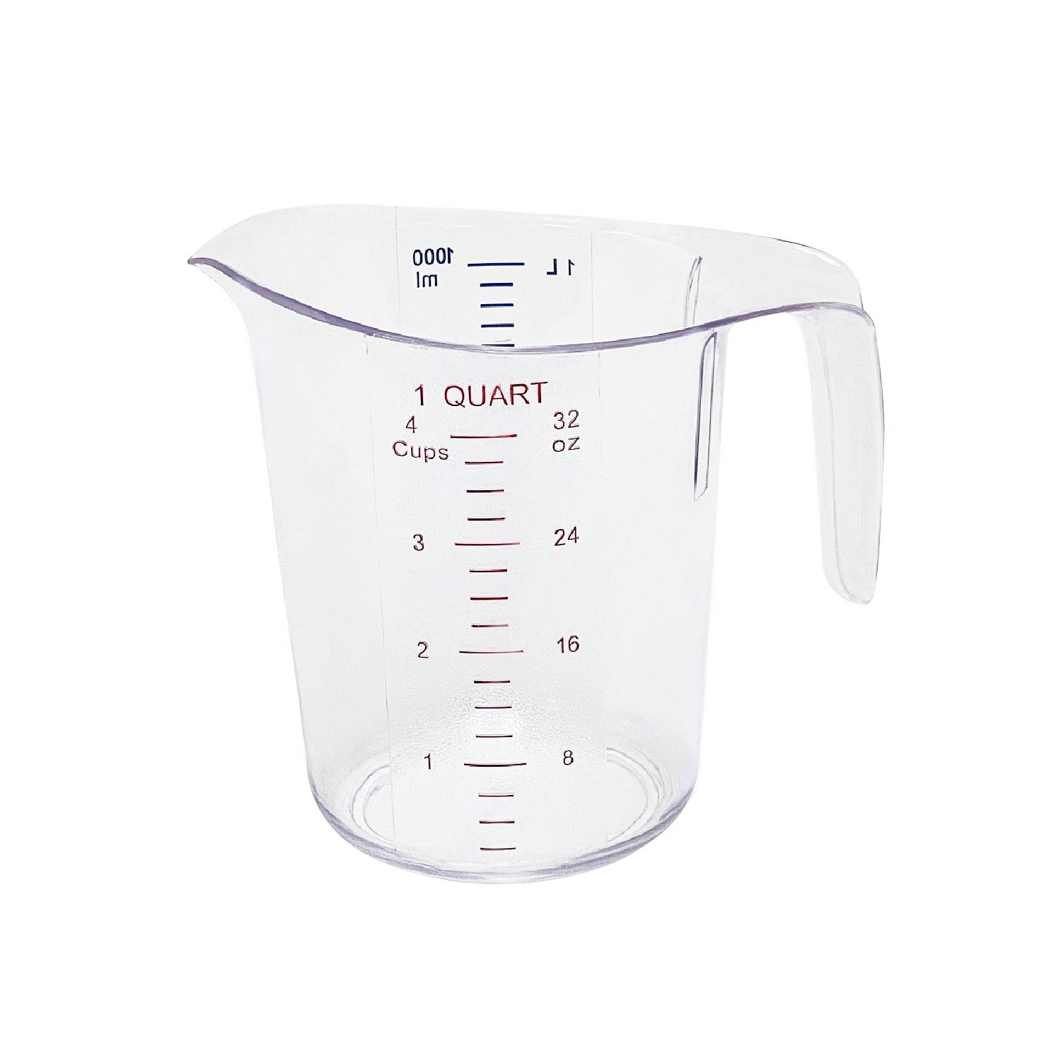 Measuring Cup, 1 qt./100-1000 mL, molded-in thumb-grip handle, dual color embossed graduation in metric and imperial, chipping and temperature resistant, dishwasher safe, polycarbonate, NSF (QTY break = 6 each)