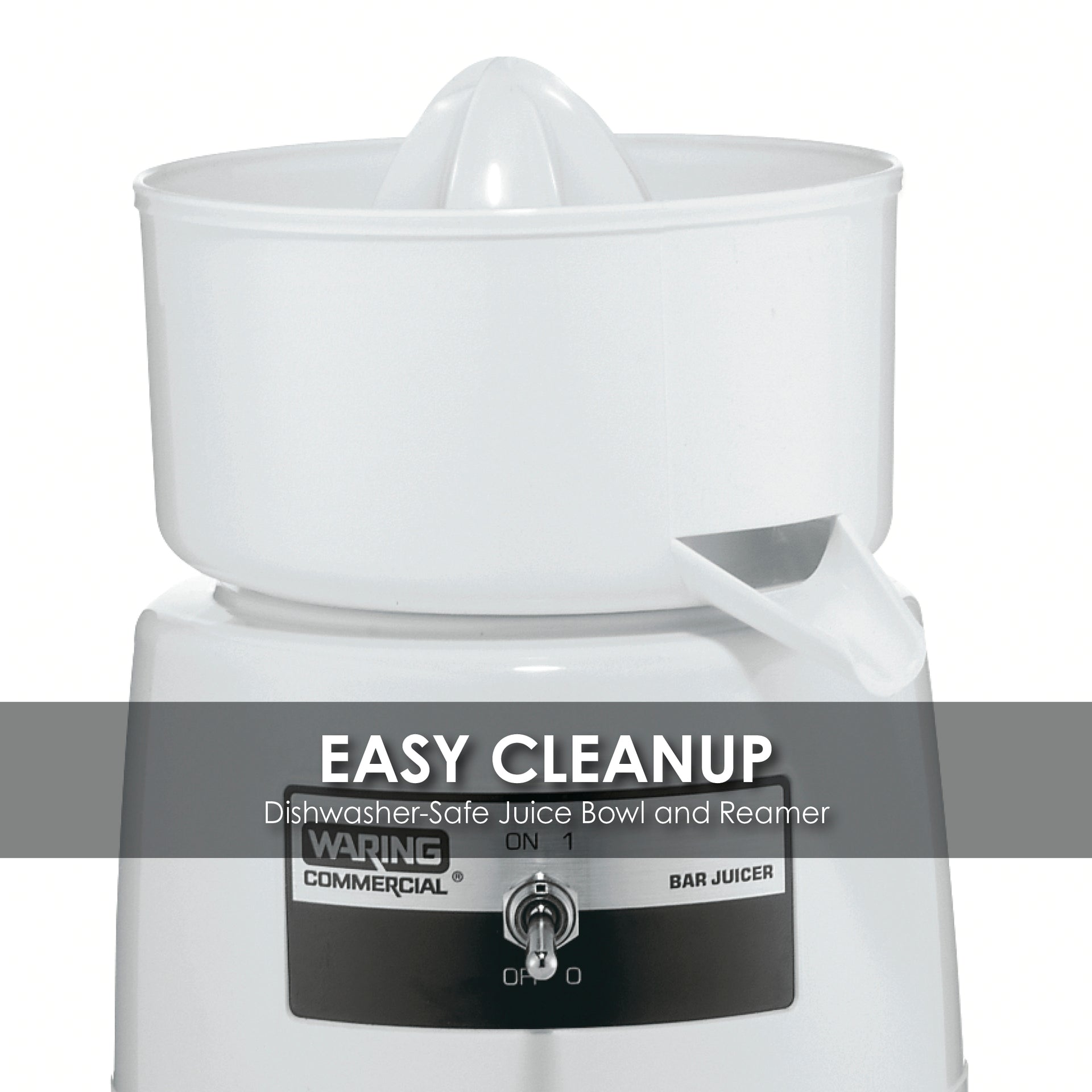 Juice up to 120 oranges per hour with the Waring® BJ120C Citrus Bar Juicer. Quickly and easily produce large quantities of pure, healthy juice from any citrus fruit. Thoroughly juice all types of citrus fruits, from the smallest lemon to the largest grapefruit with a universal reamer. Its compact design is ideal for juice bars, restaurants, hospitals, cafeterias, and hotels.