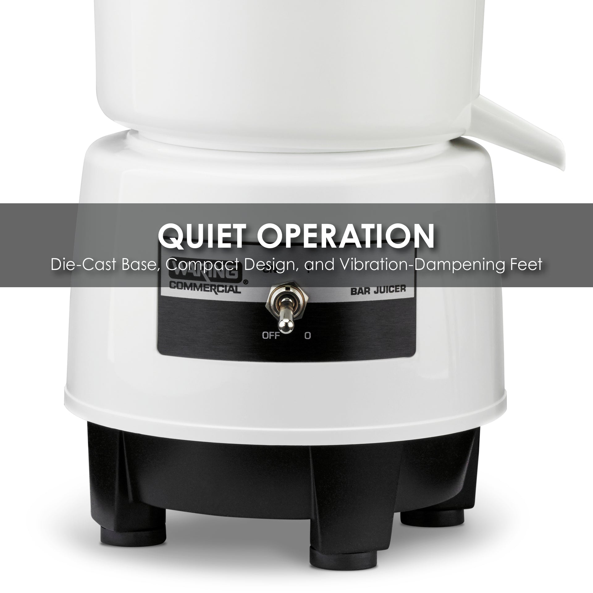 - Heavy duty, die-cast base with vibration-dampening feet for quiet, stable operation