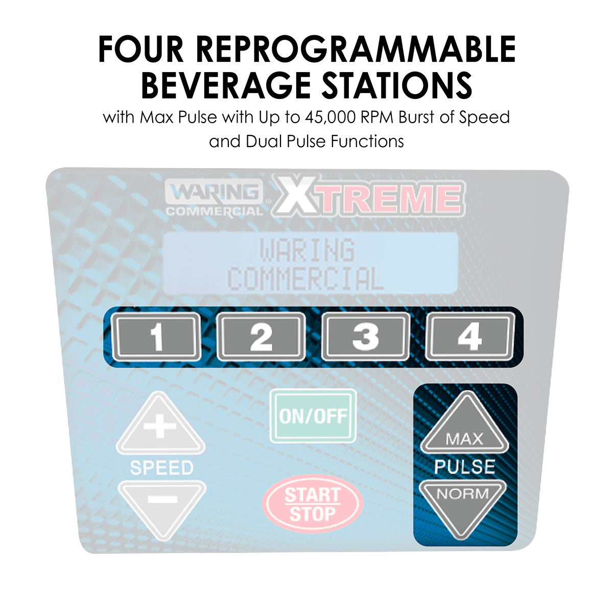 Get smooth, consistent results with the Waring® MX1500XTP. This heavy-duty, 3.5 HP blender maximizes power and efficiency using The Raptor® jar and blade assembly. Blend frozen drinks, sauces, soups and more. An easy-to-clean, electronic-membrane keypad with blue backlit LCD screen, adjustable speed controls and four programmable beverage stations make it perfect for restaurants, health facilities, schools or coffee shops.