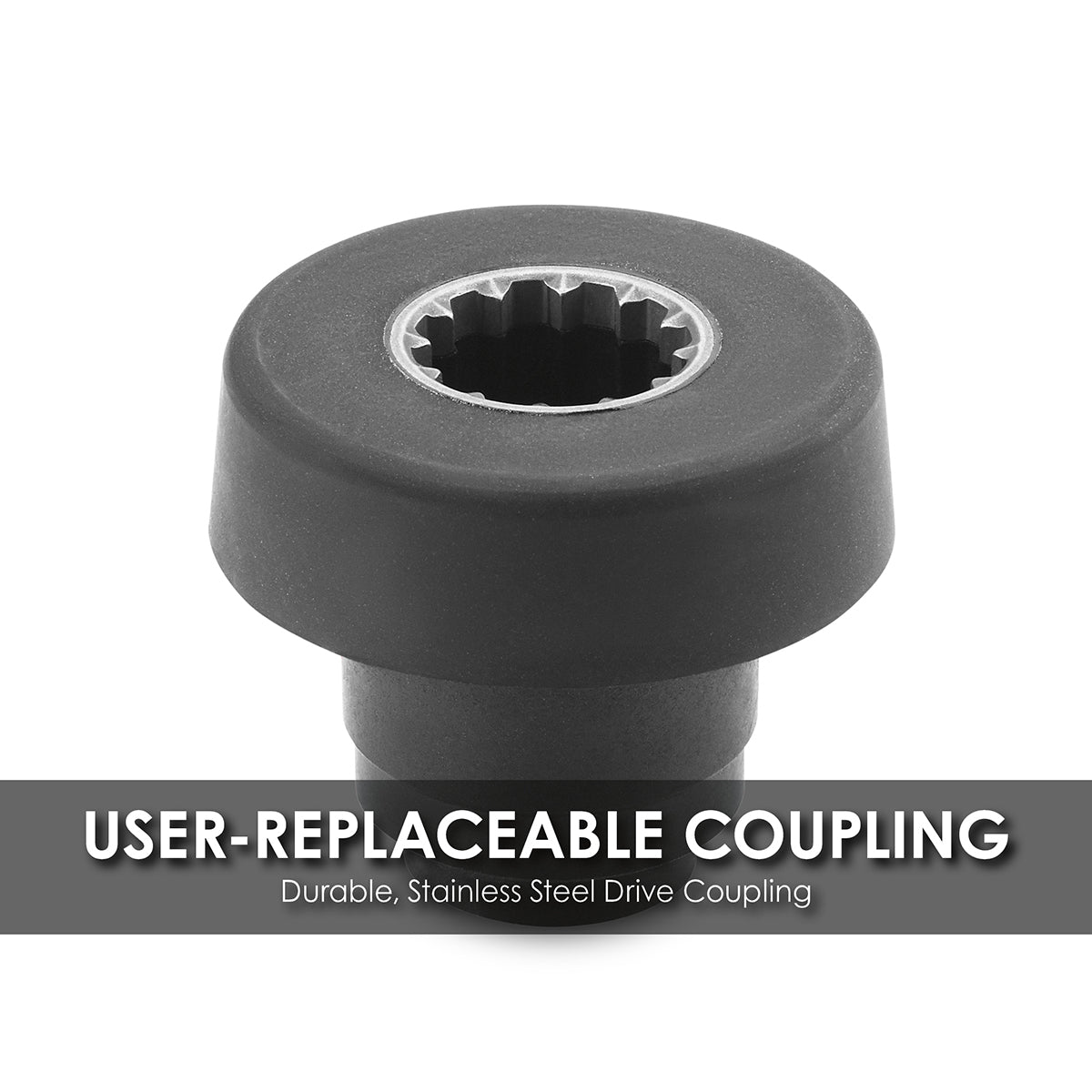 - Durable, stainless steel, user-replaceable drive coupling