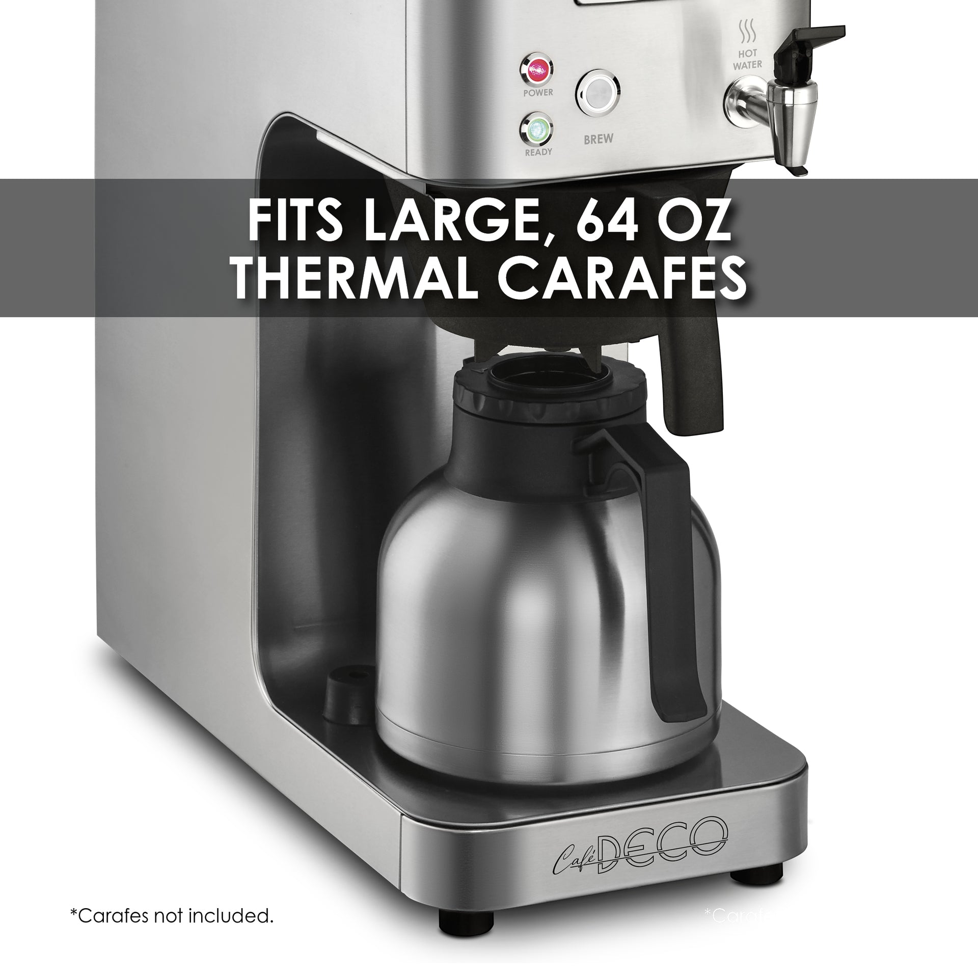 This high-performance commercial kitchen essential is a must for satisfying high demand for fresh-brewed coffee. Designed for easy operation with a plumbing connection, it offers a built-in pour-over feature and an easy-draw faucet that provides hot water on demand for soups and hot beverages. Designed for speed and efficiency, this unit brews coffee to perfection in minutes. Ideal for keeping coffee hot and ready to serve in thermal carafes, it includes an automatic refill feature for complete ease and convenience.