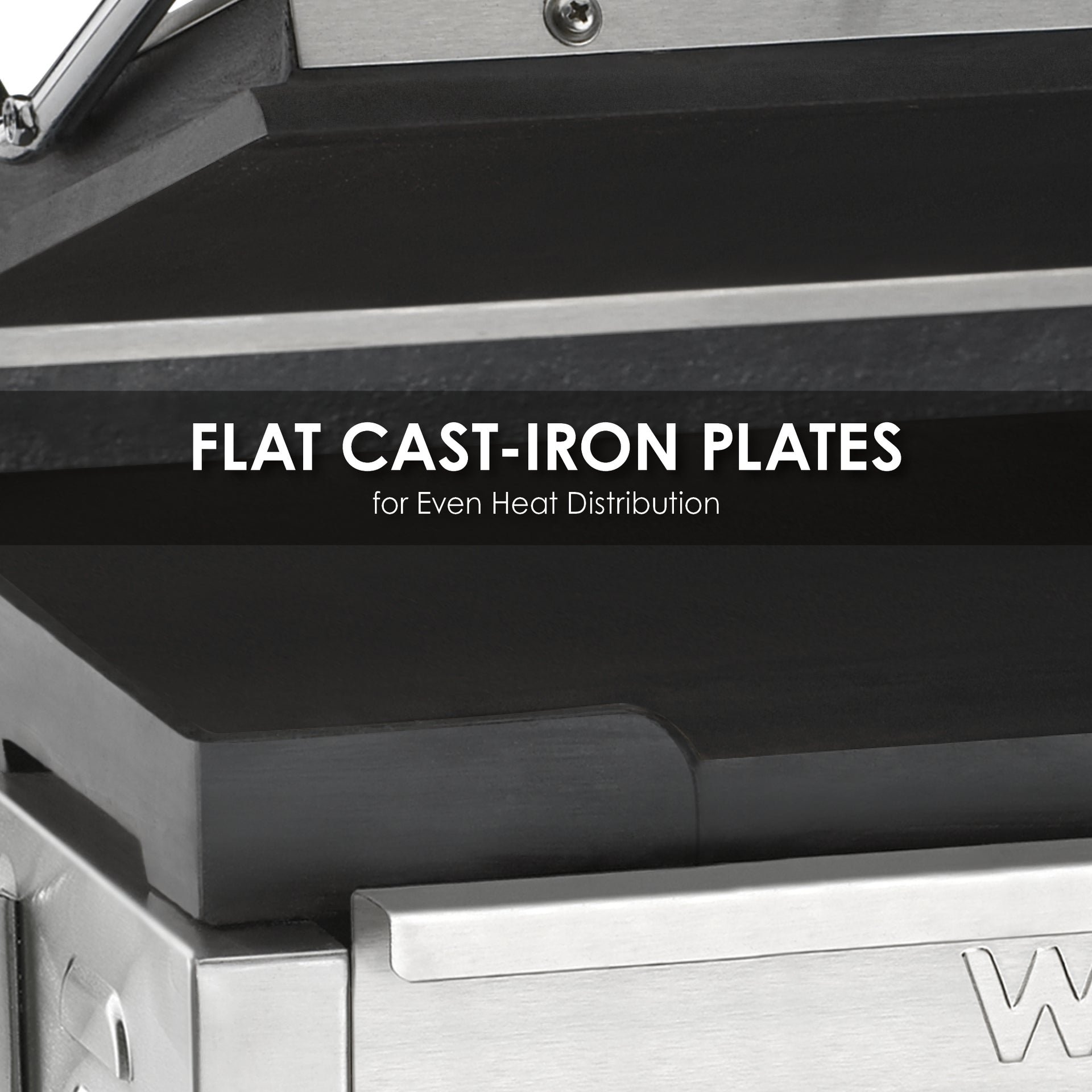 - Hinged, auto-balancing top plate suits foods up to 3" thick