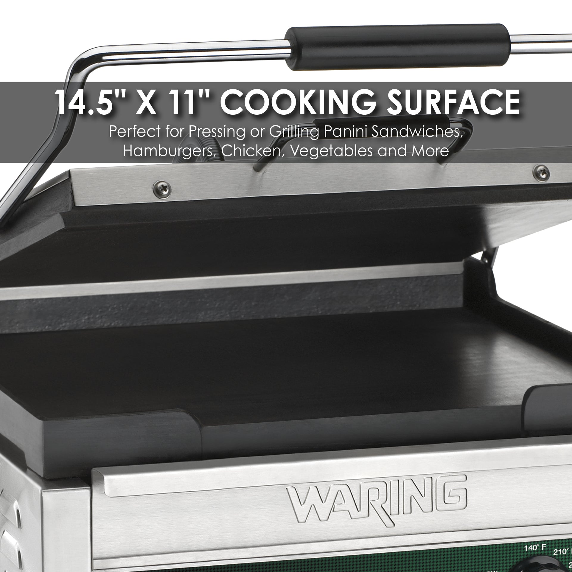 - 14.5" x 11" cooking surface
