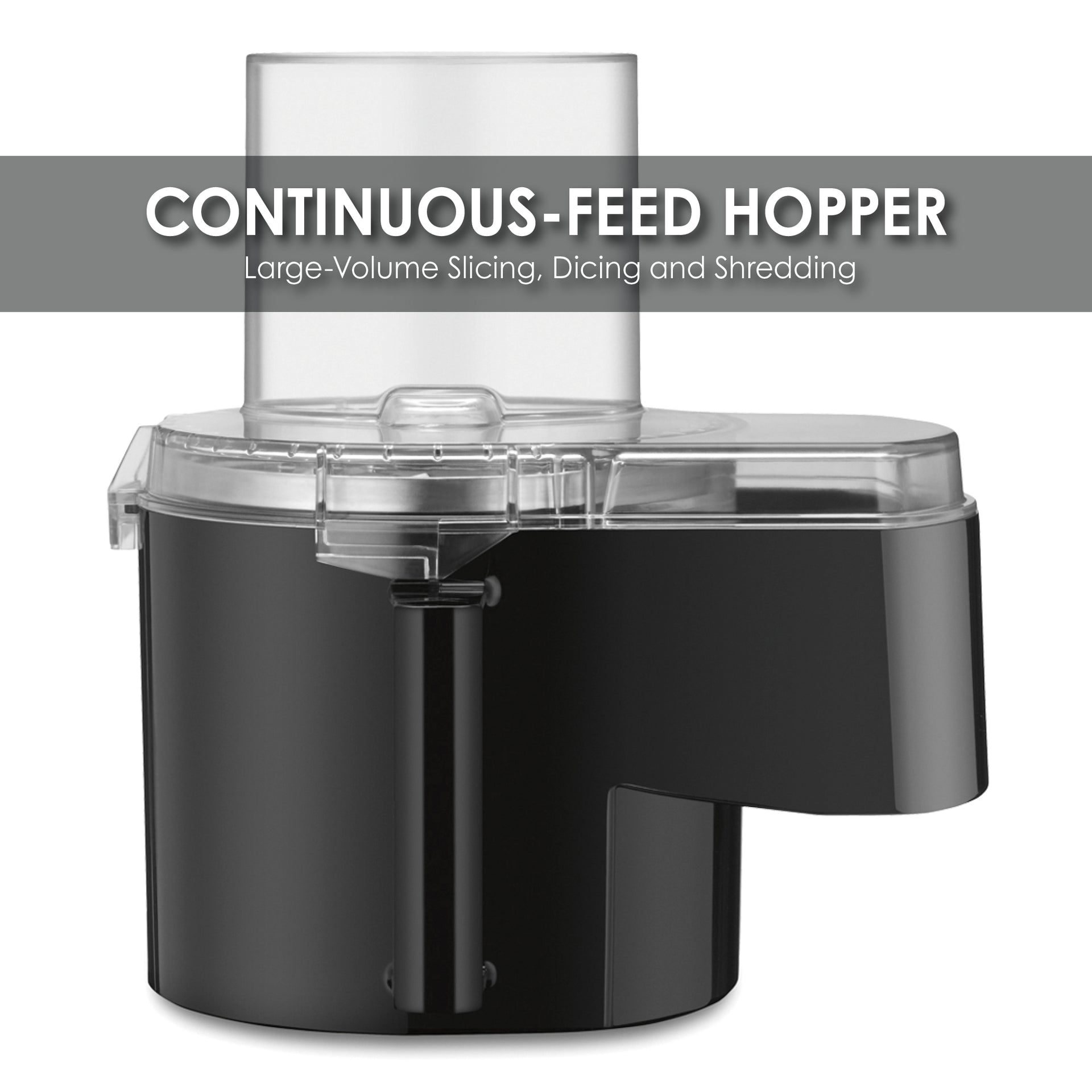 - Continuous-feed hopper for large-volume slicing and shredding