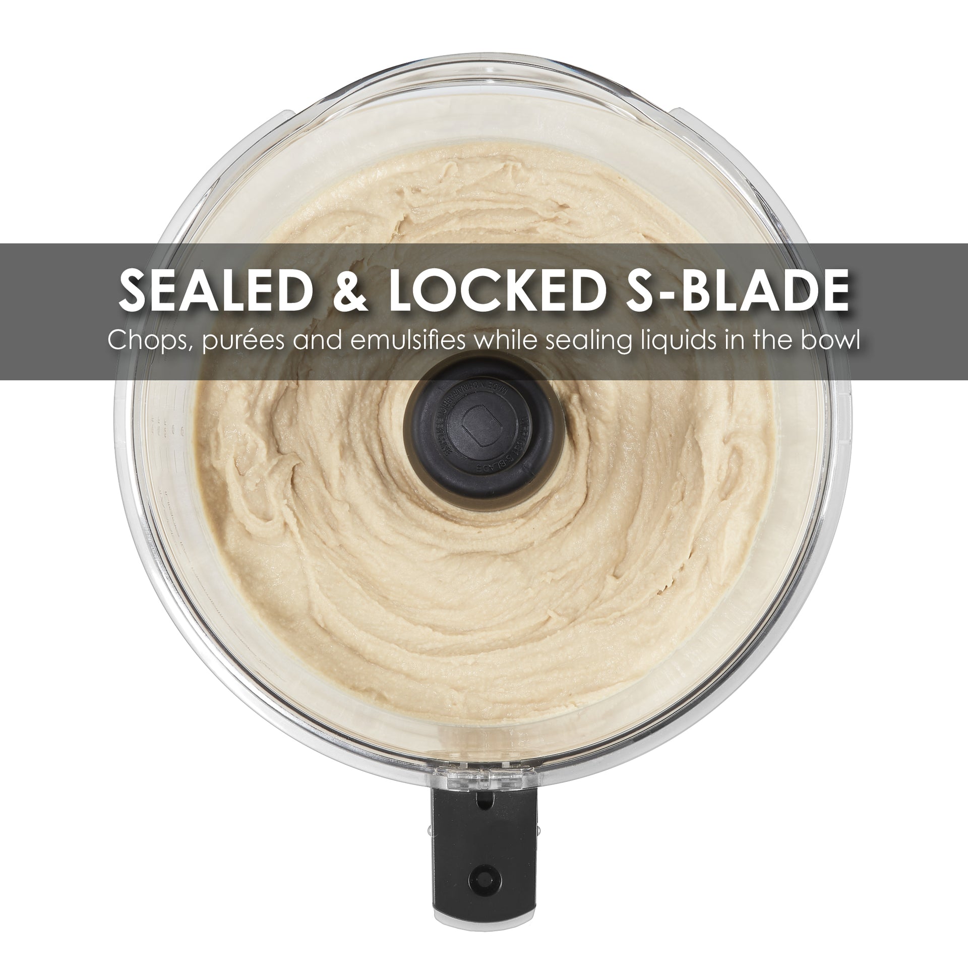 - 4-quart LiquiLock® sealed cutter mixer bowl processes soups, sauces, dressings and more