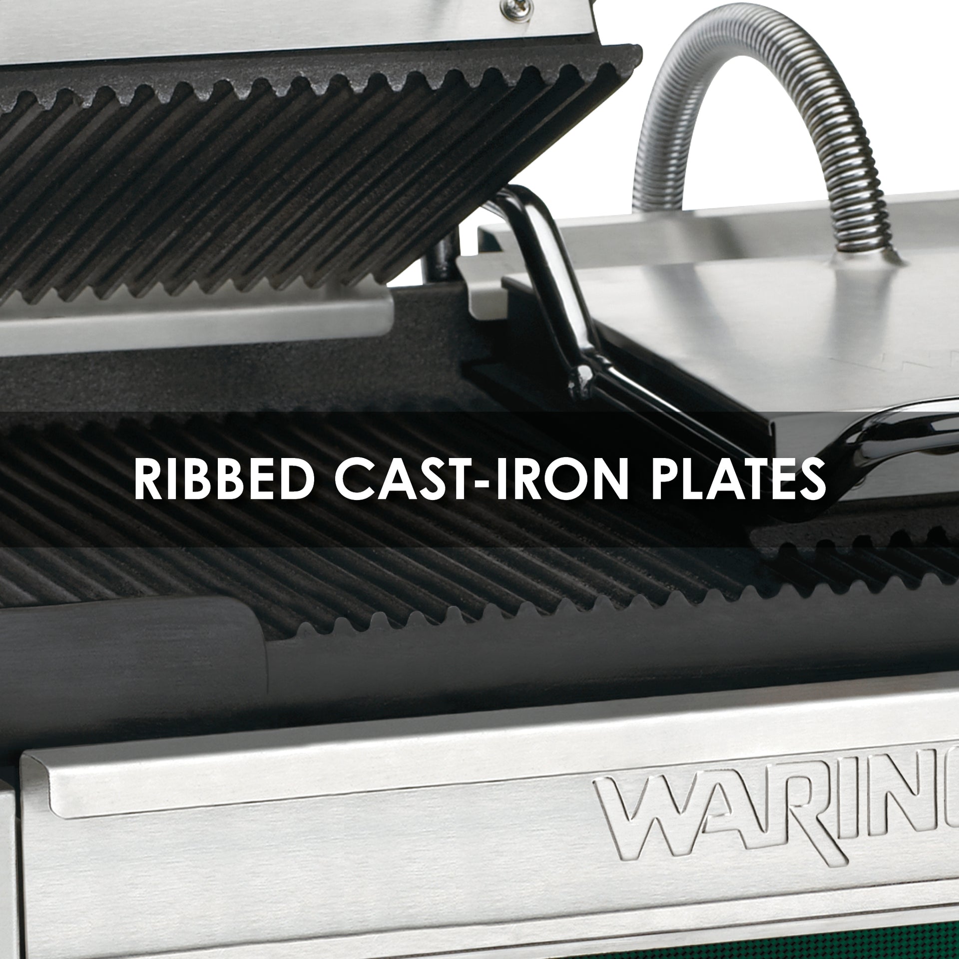 - 17" x 9.25" cooking surface with ribbed cast-iron plates