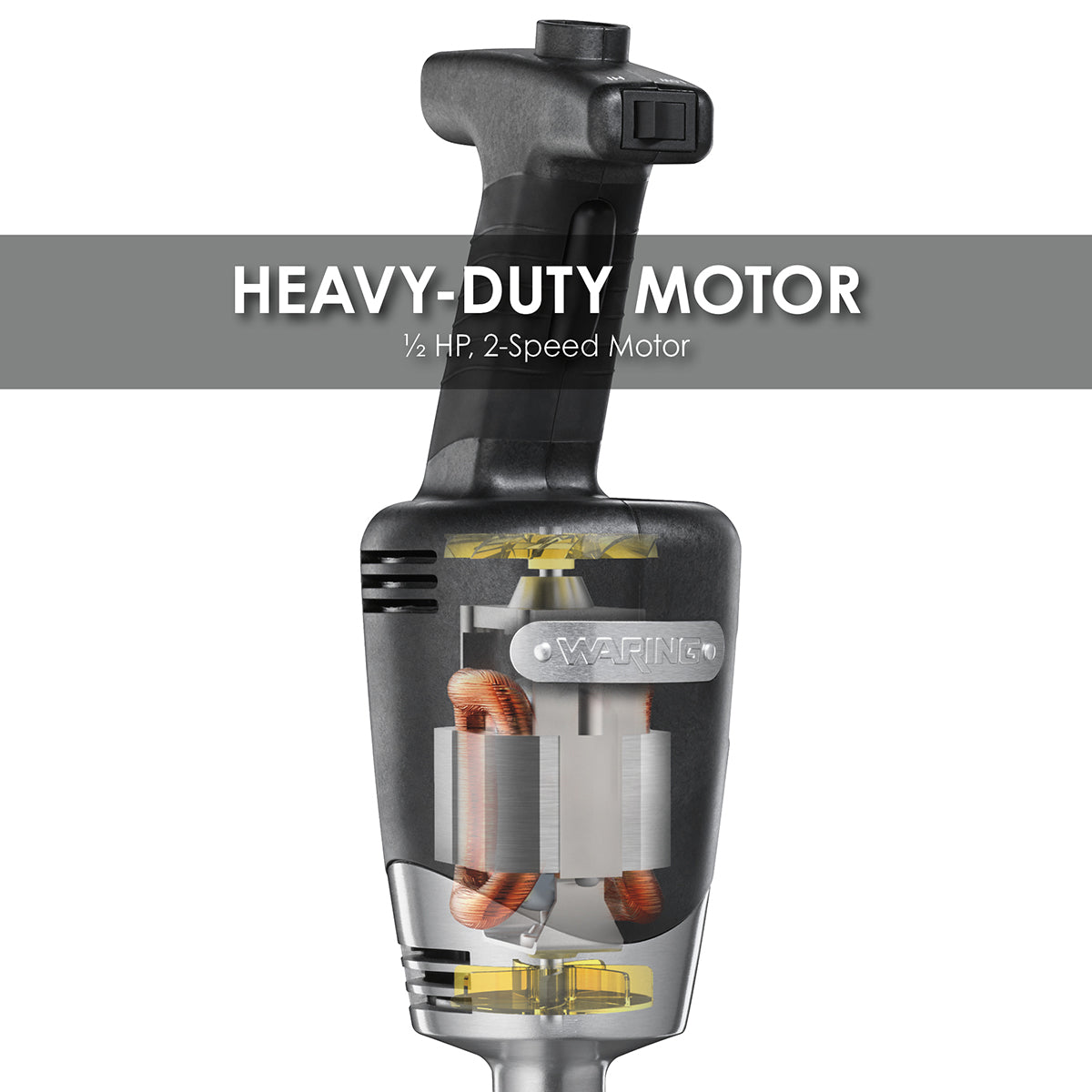 - Heavy-duty, 1/2 HP motor