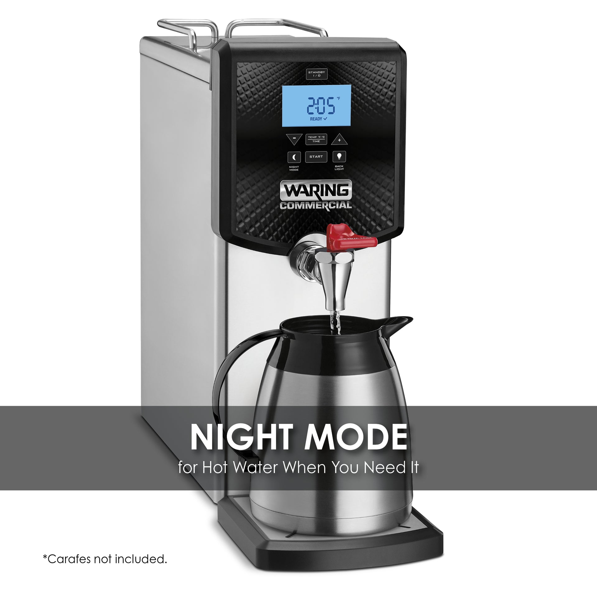 Designed to conserve countertop space while providing maximum dependability and durability, Waring’s 3-gallon hot water dispenser is ideal for making hot beverages, soups, grits, oatmeal, and more. Equipped with digital controls and an adjustable temperature range, the unit is simple to use, with a removable drip tray that makes cleanups easy. The Night Mode feature ensures hot water is ready to pour from the drip-proof tap whenever needed. Great for corporate kitchens, convenience stores, catered events—anywhere on-demand hot water is needed.